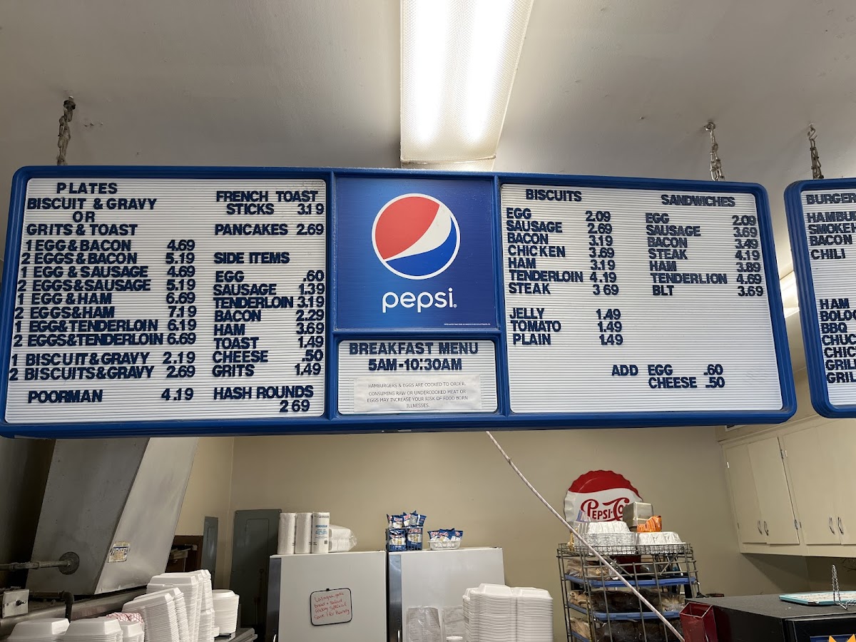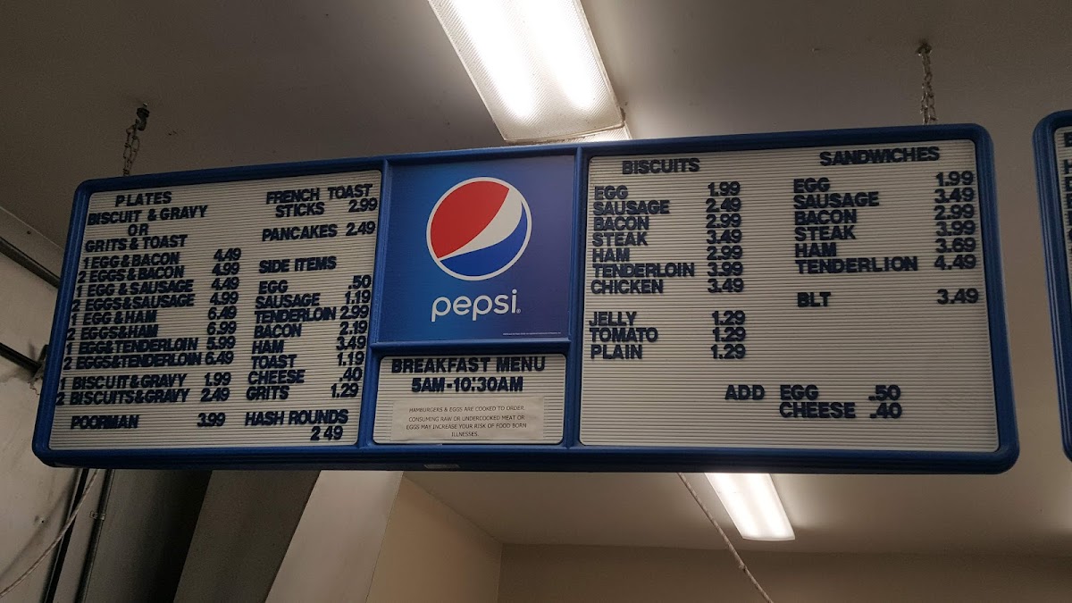 Start your day with items like Randall's 3 Egg Biscuit or the classic Bacon and Eggs, all made with fresh, simple ingredients that feel just like home. For lunch, the menu features a selection of burgers, including the Smokehouse and Bacon Cheeseburger, paired perfectly with crispy, seasoned fries. Sandwich options range from Sausage to Tenderloin, suited to whatever casual cravings you might have.